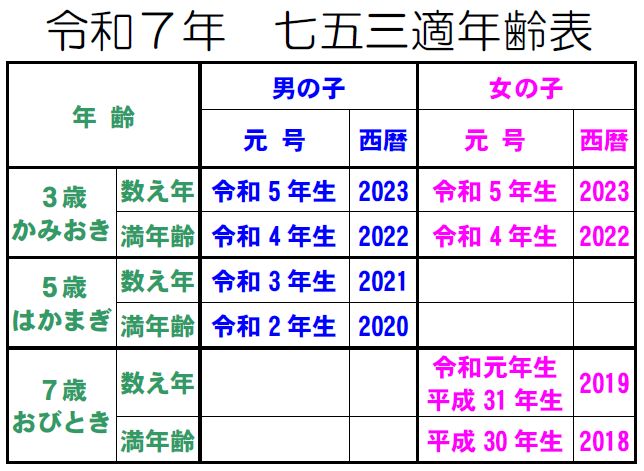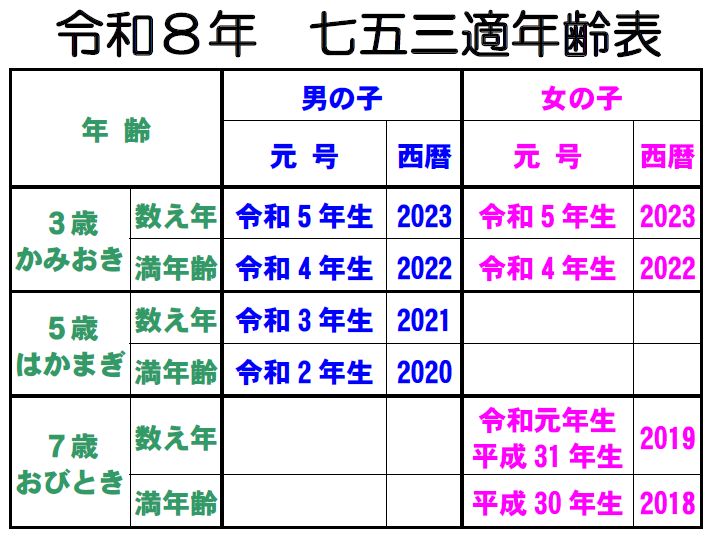 ・また、古来より数え年で行っていましたが、近年は満年齢で行う割合も高くなっています。